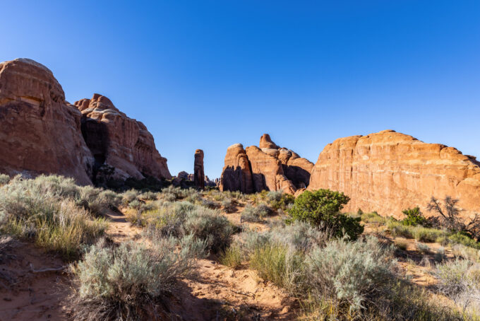 - Landscape Arch (1,6 km): jeden z najdłuższych naturalnych łuków na świecie, o rozpiętości ok. 88 m. Wrażenie filigranowości skalnej ściany jest nie do opisania.