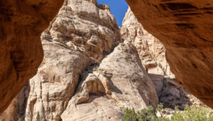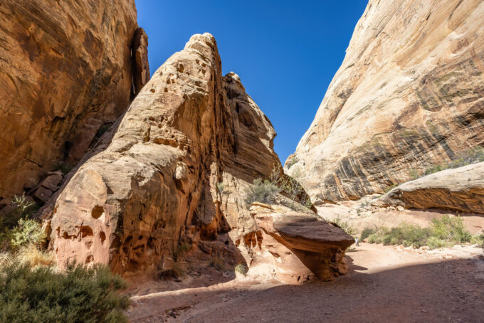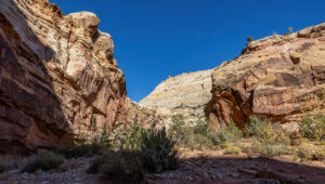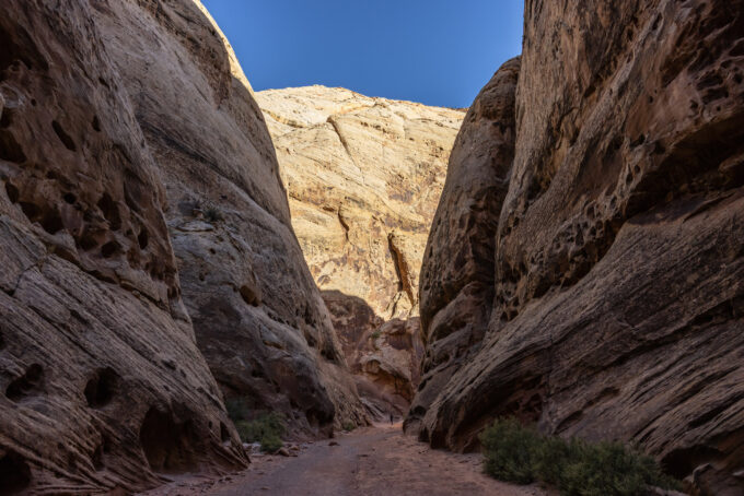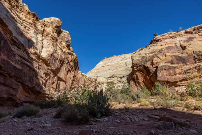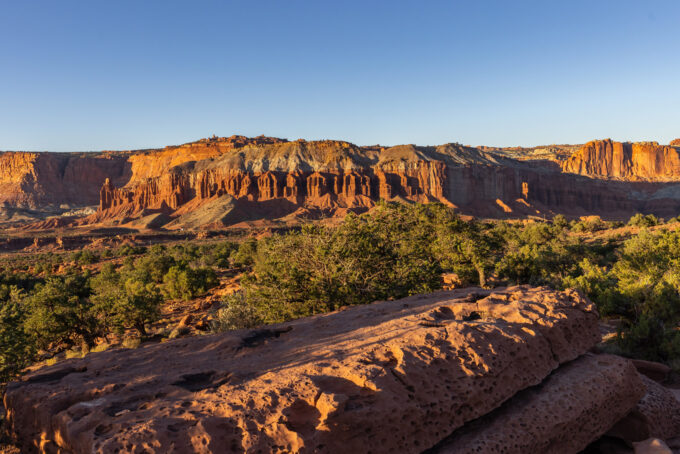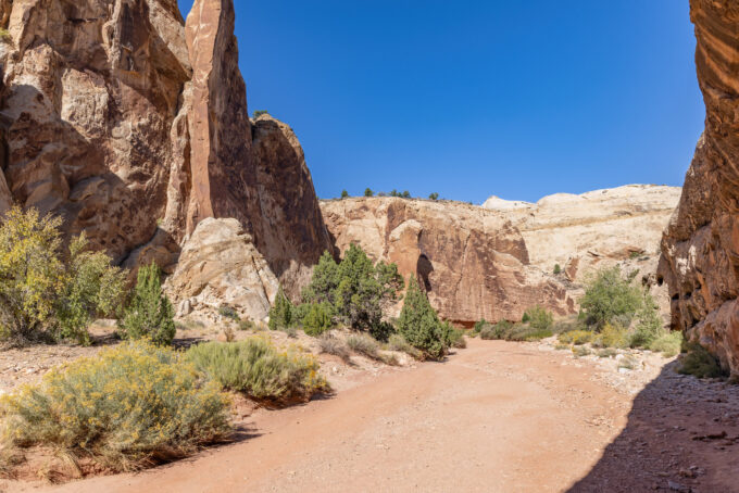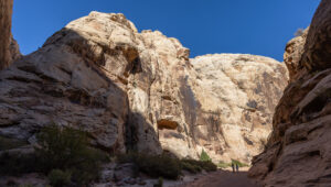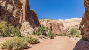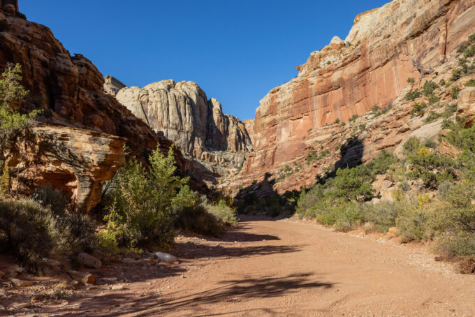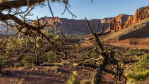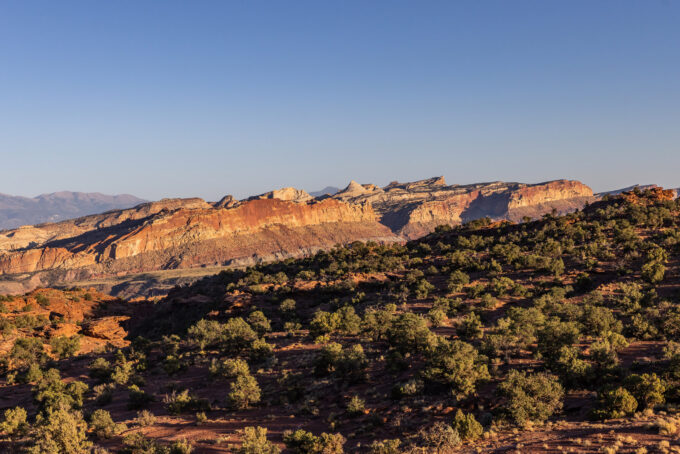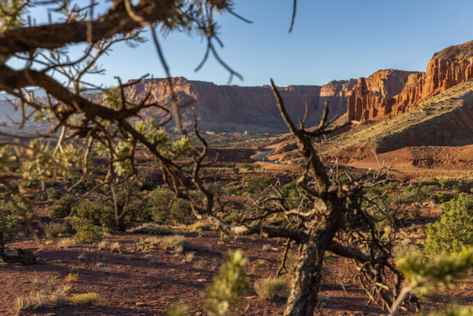 Wjechałem do parku od strony Torrey – niewielkiej, spokojnej miejscowości będącej głównym punktem wypadowym do Capitol Reef. Już sama droga dojazdowa, Scenic Byway 24, zapowiadała niezwykłe wrażenia. Czerwone skały, zmieniające kolory w zależności od kąta padania światła, kontrastowały z błękitem nieba i zielenią rzadkiej, ale upartej roślinności pustynnej.
