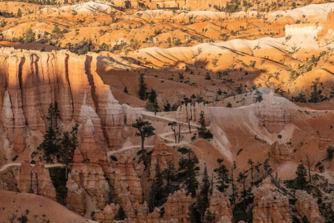 W przeciwieństwie do bardziej zatłoczonych parków, takich jak Grand Canyon czy Zion, Bryce oferuje więcej ciszy i przestrzeni. Nawet w szczycie sezonu można znaleźć momenty samotności – szczególnie na dłuższych szlakach, takich jak Peekaboo Loop czy Fairyland Loop, które oferują jeszcze więcej panoram i nieco większe wyzwanie kondycyjne.