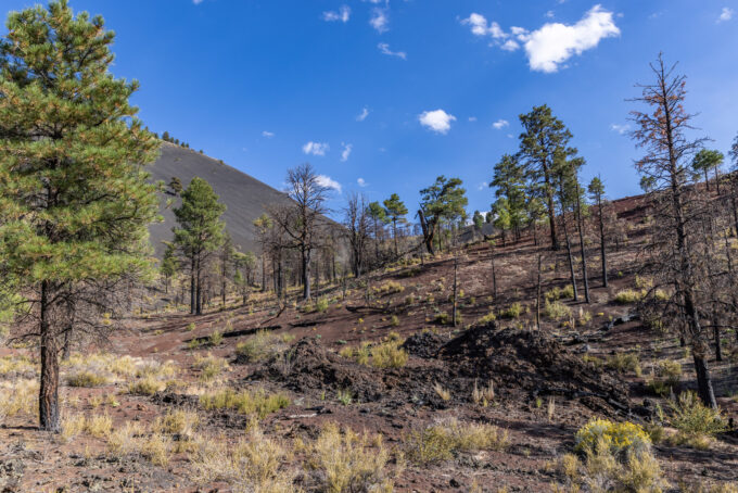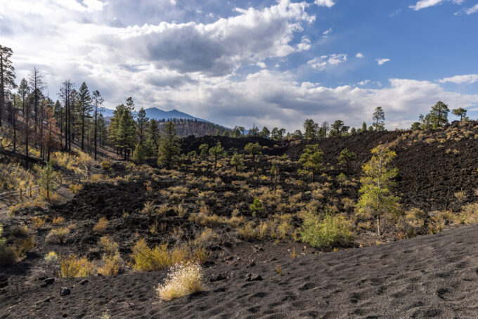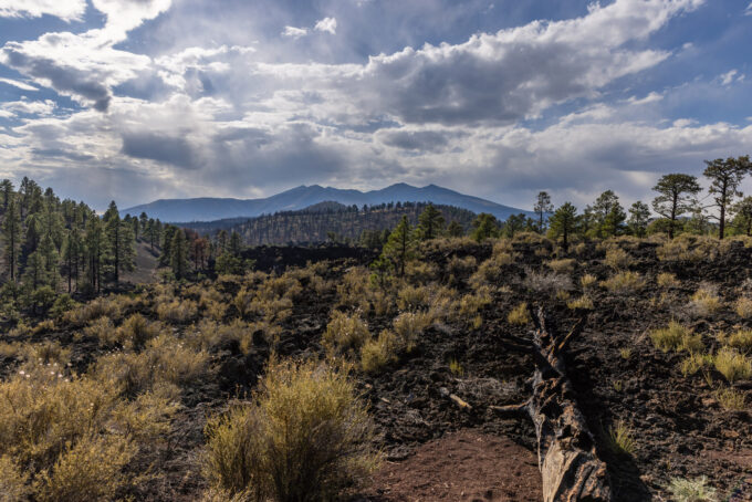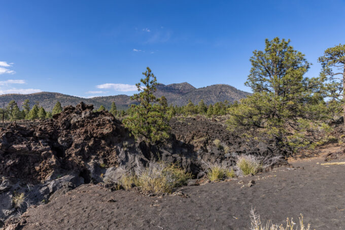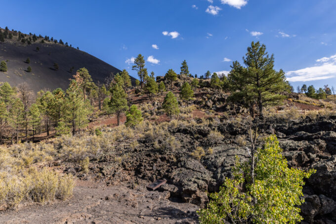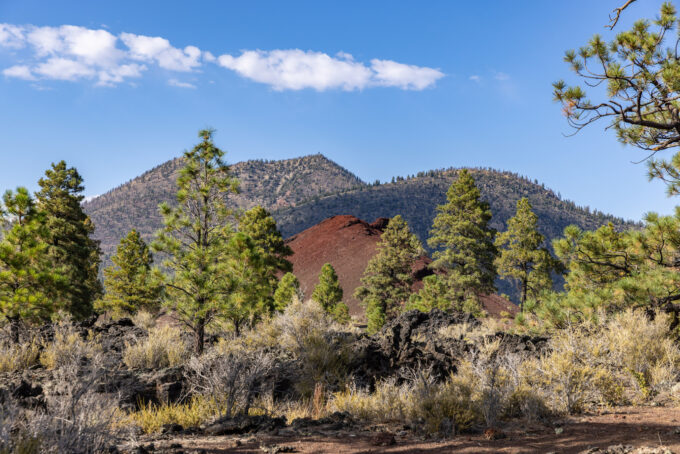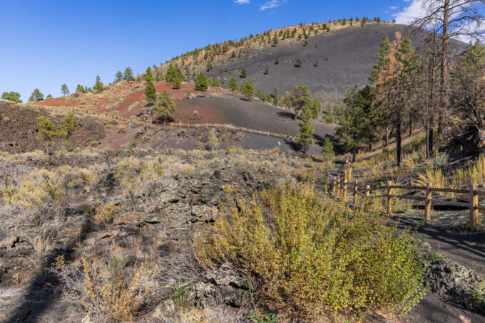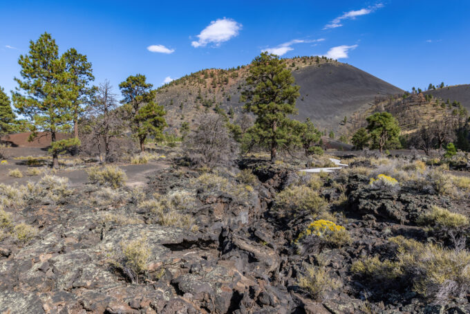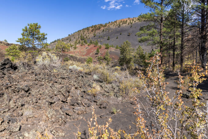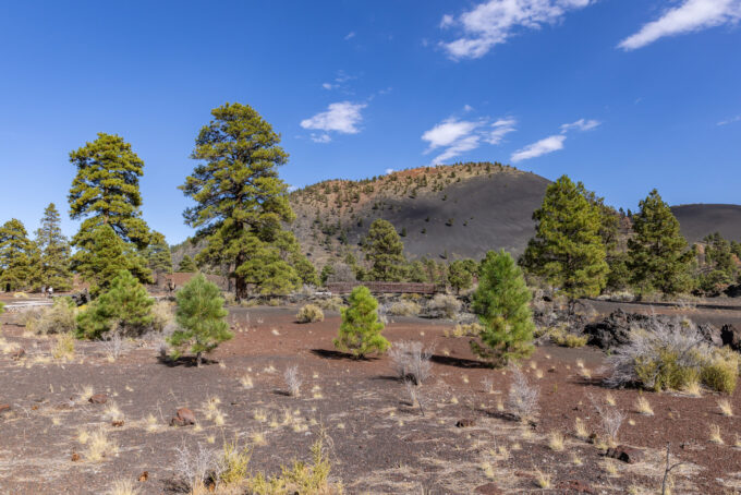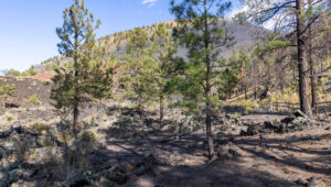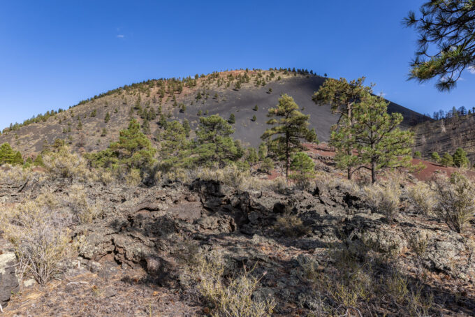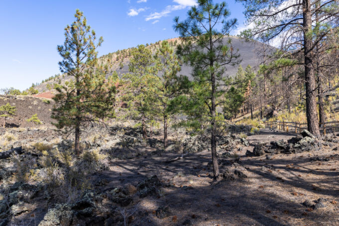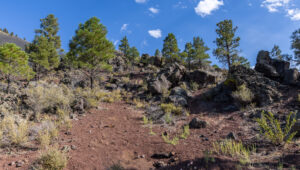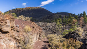 Zamiast tego można podziwiać go z dołu lub wybrać się na nieco dłuższy spacer na pobliskie wzgórza – np. na Lenox Crater Trail, skąd rozpościera się widok na cały obszar erupcji i pobliską dolinę San Francisco Peaks.
