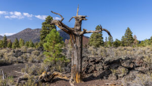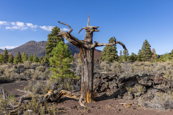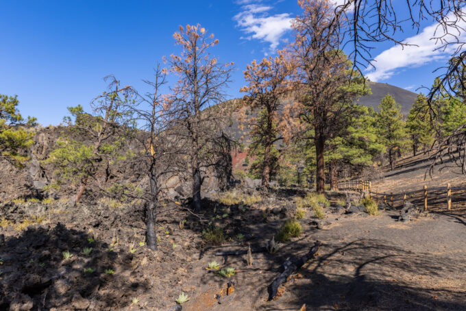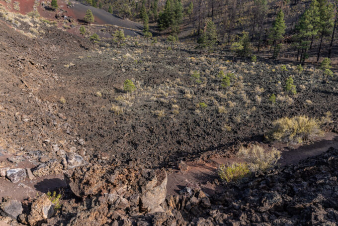 Miejscami roślinność zaczyna wracać – sosny, krzewy, drobne trawy – ale to natura działająca powoli i ostrożnie. Erupcja Sunset Crater była na tyle niszczycielska, że do dziś, niemal tysiąc lat później, część obszaru wciąż wygląda jak po świeżej eksplozji.
