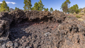 Zbliżając się do parku, krajobraz zaczyna się zmieniać. Las stopniowo staje się rzadszy, a ziemia – coraz ciemniejsza. Gdy dojeżdżasz do głównego parkingu przy Lava Flow Trail, masz już pewność: jesteś na terenie dawnej katastrofy geologicznej.