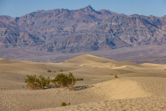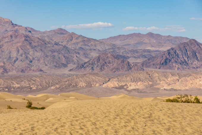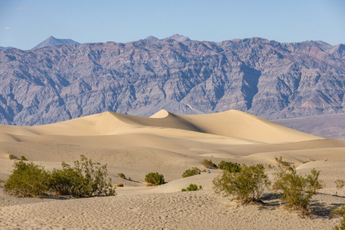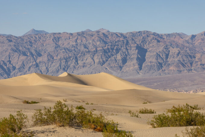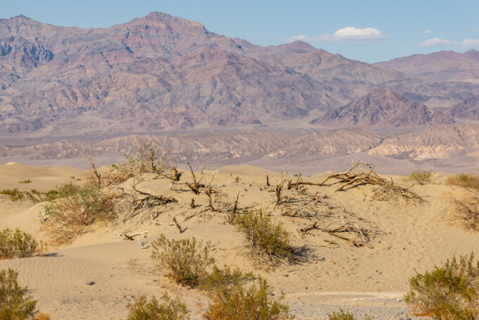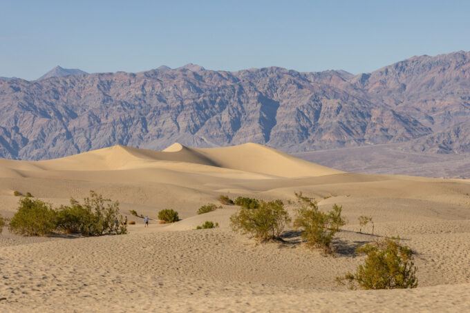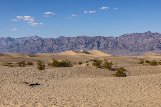 W sercu Doliny Śmierci znajdują się wydmy Mesquite Flat. Ich zmienne kształty i faktury są dziełem wiatru, który bezustannie modeluje krajobraz. To doskonałe miejsce na krótką wędrówkę lub podziwianie spektakularnych widoków, zwłaszcza o zmierzchu, gdy cienie wydłużają się, a piasek nabiera złocistych tonów.
