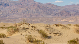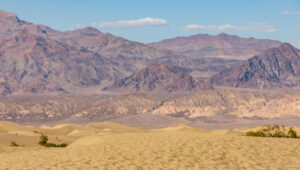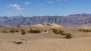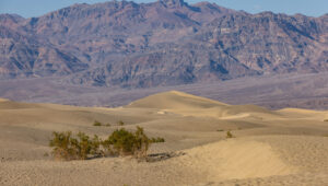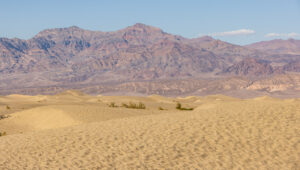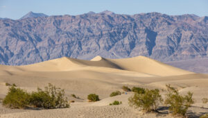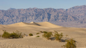 W sercu Doliny Śmierci znajdują się wydmy Mesquite Flat. Ich zmienne kształty i faktury są dziełem wiatru, który bezustannie modeluje krajobraz. To doskonałe miejsce na krótką wędrówkę lub podziwianie spektakularnych widoków, zwłaszcza o zmierzchu, gdy cienie wydłużają się, a piasek nabiera złocistych tonów.