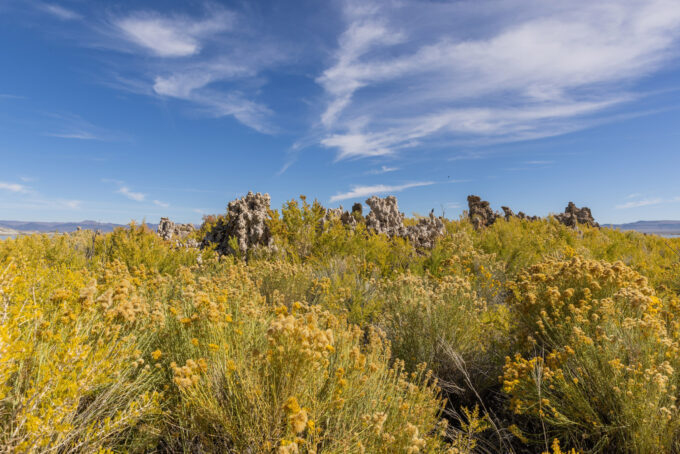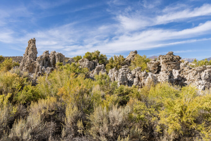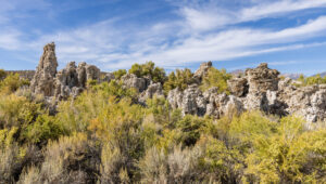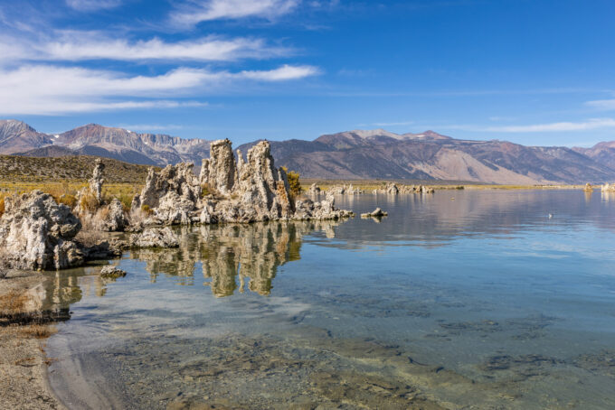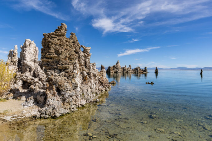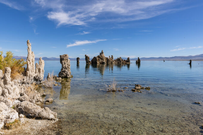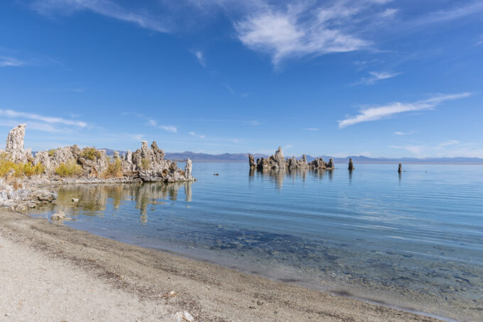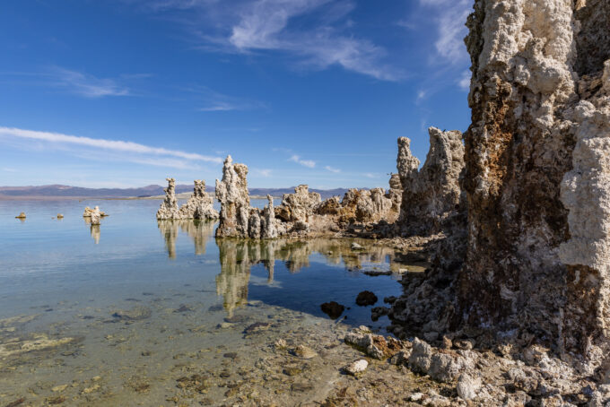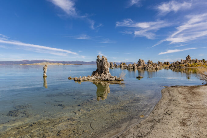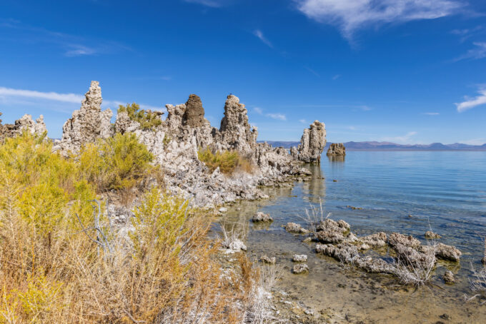 Jednym z najbardziej rozpoznawalnych elementów krajobrazu Mono Lake są wieże tufowe – formacje skalne powstałe w wyniku reakcji wapnia z wodą bogatą w węglany. Przez tysiąclecia wieże te tworzyły się pod powierzchnią jeziora, a w XX wieku, gdy poziom wody gwałtownie spadł z powodu działalności człowieka, ukazały się one w pełnej krasie, tworząc surrealistyczny, niemal księżycowy pejzaż.