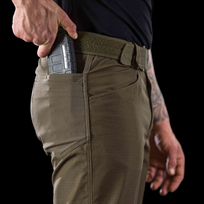 Spodnie P-40 Urban Gen.2 są kompatybilne z nakolannikami 3D firmy UF PRO, zapewniając dyskretną i niezawodną odporność na uderzenia. Konstrukcja bezpiecznie utrzymuje ochraniacze kolan na miejscu bez konieczności ciągłej regulacji, zapewniając stałe wsparcie podczas klęczenia, kucania lub szybkich ruchów. Zaprojektowane z myślą o wydajności operacyjnej, te spodnie są wyposażone w kieszenie Tuck-Lock i strategicznie rozmieszczone przegródki zapewniające bezpieczne przechowywanie. Konstrukcja kieszeni w kształcie litery V i elastyczna podszewka zapewniają bezpieczne przechowywanie i łatwy dostęp do niezbędnego sprzętu, zachowując opływowy profil, idealny do środowisk taktycznych.