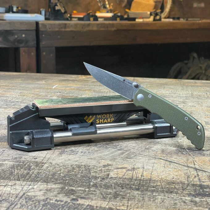 Moje doświadczenia z Work Sharp ograniczają się jedynie do modelu Guided Field Sharpener. Jego nabycie było owocem dośc długich poszukiwań idealnej ostrzałki kieszonkowej, cechującej się nie tylko niską masą, ale również wygodą użytkowania. Zachęcony licznymi pozytywnymi recenzjami, zakupiłem ostrzałkę mniej więcej w połowie lipca. Odbywając praktyki na magazynie, poddałem swoje ulubione foldery (noże z głownią składaną) nie lada próbie – mniej więcej w połowie każdego tygodnia, każdy z noży (stal 4116, AUS 10 i D2) wymagał już podostrzenia. Guided Field Sharpener spełnia swoją rolę znakomicie dzięki dwóm gradacjom oraz ceramice i skórze, które pomagają w usunięciu tzw. druta (burr) i wygładzeniu krawędzi tnącej. Jej prostokątny kształt umożliwia stabilne i wygodne chwycenie, podobnie jak w przypadku tradycyjnej osełki.