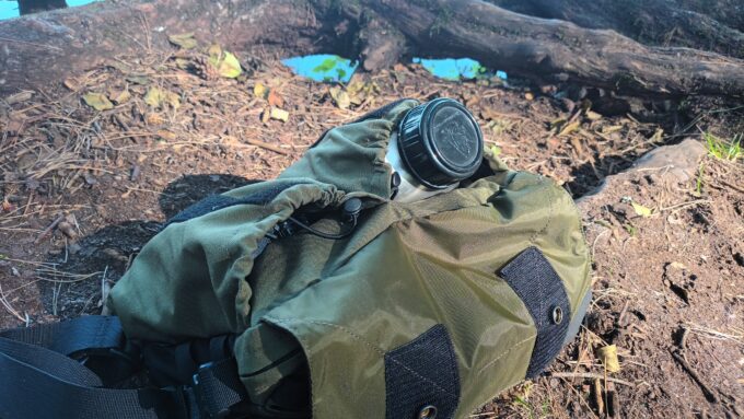 Dwie duże kieszenie to w zasadzie gwóźdź programu, gdyż to one odpowiadają za nietypowy wygląd torby. Są wyjątkowo obszerne i bez problemu mieszczą manierkę Pathfinder z zestawem do gotowania. Pomieszczą także standardową manierkę US Army i półlitrową butelkę Nalgene skompletowaną ze stalowym kubkiem (pozostawiając w drugim przypadku sporo miejsca).