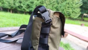 Dwie duże kieszenie to w zasadzie gwóźdź programu, gdyż to one odpowiadają za nietypowy wygląd torby. Są wyjątkowo obszerne i bez problemu mieszczą manierkę Pathfinder z zestawem do gotowania. Pomieszczą także standardową manierkę US Army i półlitrową butelkę Nalgene skompletowaną ze stalowym kubkiem (pozostawiając w drugim przypadku sporo miejsca).