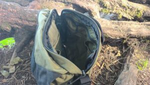 Podczas użytkowania nie doszło do żadnych uszkodzeń – torba jest tak prosta, że ciężko byłoby w niej coś uszkodzić. Nie traktuję ostrożnie swojego sprzętu – skoro zaprojektowany został do użytku w lesie, w środowisku gdzie narażony jest na liczne przetarcia, przemoczenie i przedziurawienia, niech do takiego trafia. Niech będzie rzucany na ziemię, ciągnięty po podłożu, użytkowany awaryjnie jako improwizowana mata. Taki jest sens jego istnienia.