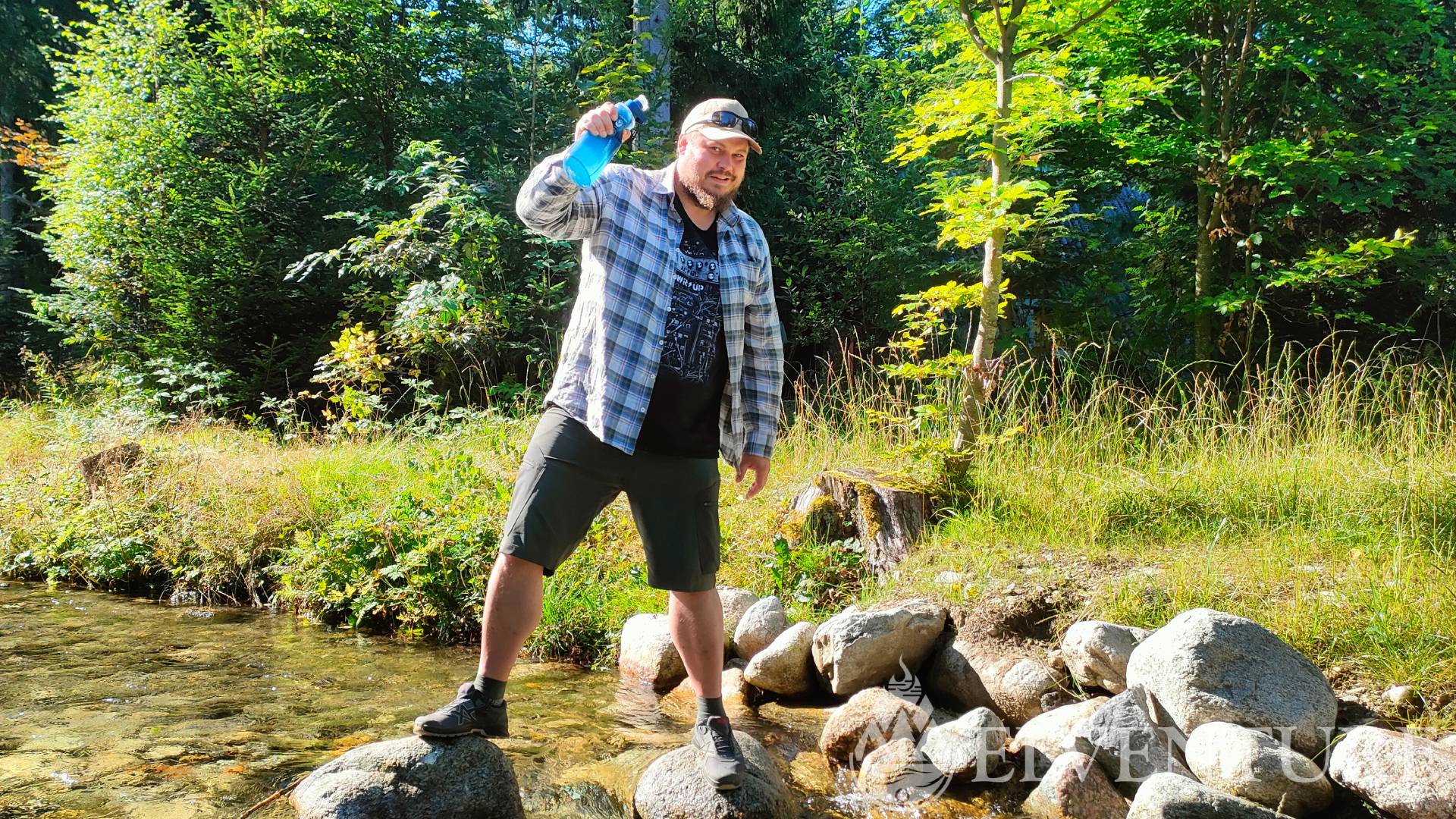 Najpierw nalałem sobie w domu kranówki – ot, na dobry początek. Od razu spróbowałem i faktycznie filtr węglowy nieco poprawił walory smakowe. Ale jako że mam dobrą kranówkę, to nie było efektu wow. Butelka Katadyn BeFree AC wylądowała w plecaku, gdzie ładnie dopasowała się do pozostałej zawartości i po kilku godzinach jazdy ruszyliśmy na delikatną pieszą wycieczkę. I tu moja pierwsza uwaga: trzymanie wody w butelce zbyt długo nadaje jej „plastikowego” posmaku, który znam m.in. z bukłaków plecakowych. Nie jest to wybitnie nieprzyjemne ani niebezpieczne, ale lojalnie informuję.