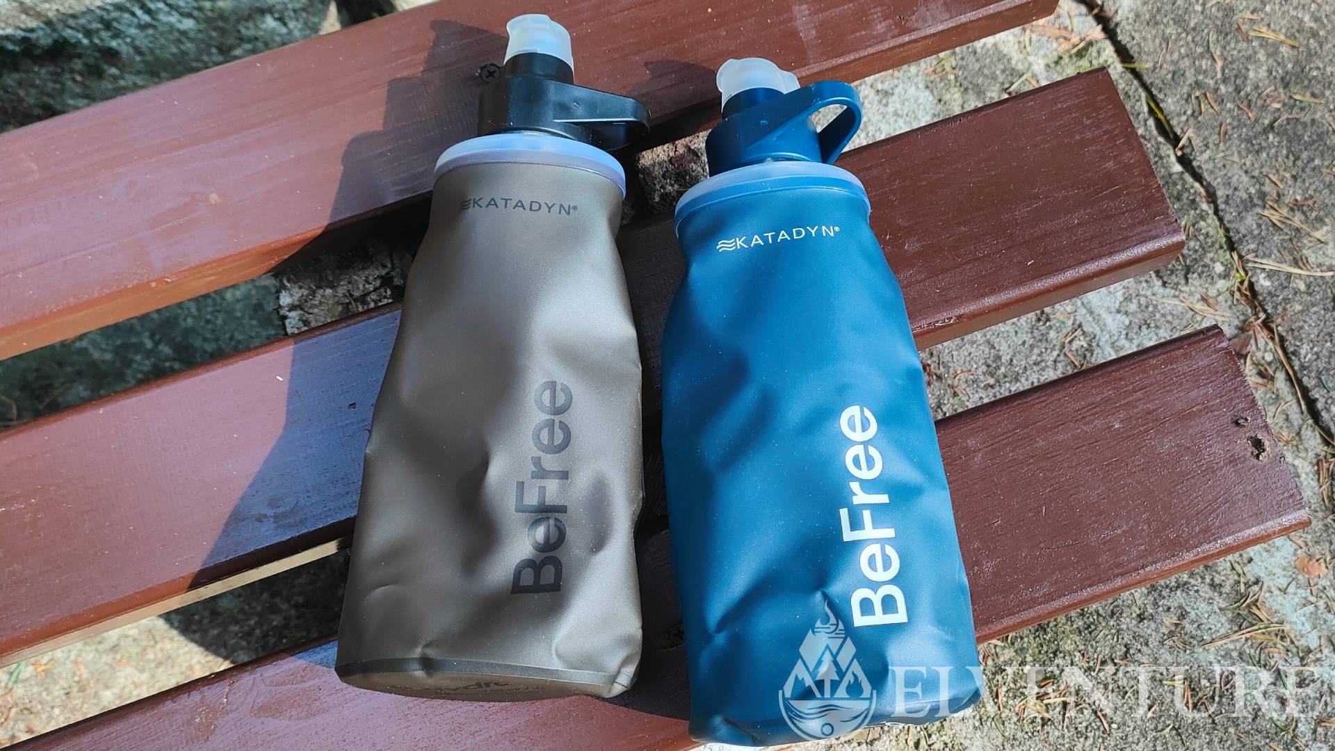 Katadyn BeFree AC 1.0L to miękka butelka z szerokim wlewem, wyposażona w podwójny system filtracji. Do zrecenzowania otrzymałem dwie wersje: niebieską z oznaczeniem „ultralight” na opakowaniu oraz tzw. czarną (dla mnie wygląda jak mix szarości z oliwką) określoną „double layer”. Według producenta jedna jest „normalna”, a druga wzmocniona. Na papierze jedyna różnica między nimi to wspomniany kolor i masa. No i cena ֪– czarna jest droższa. A oto reszta parametrów: