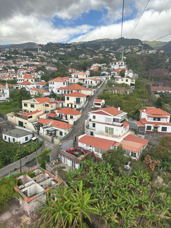 Kolejka linowa Funchal-Monte startuje na wybrzeżu miasta, a kończy koło ogrodu botanicznego. Jej trasa ma długość 3200 m oraz około 300 m przewyższeń, które pokonuje w 15-25 minut. Wagoniki jeżdżą co chwilę, także nawet specjalnie nie czekaliśmy. W czasie jazdy widzimy z góry lokalne zabudowania – kręte uliczki, domy, ogrody, lasy i rozciągający się po horyzont ocean.