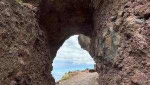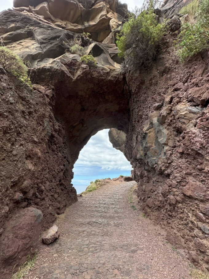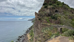 Próbując spacerować możliwie blisko wybrzeża oceanu w Funchal (co wcale nie jest proste przez ukształtowanie terenu), trafiliśmy na tunel wykuty w skale prowadzący do plaży. Ma on długość 155 metrów, jest oświetlony i zamykany na noc. Mniej więcej w jego połowie docieramy do imponującej jaskini, do której wdziera się ocean. Z kamienistej plaży, gdzie dotrzemy po wyjściu z tunelu, można podziwiać widok na miasto oraz przepiękne zachody słońca.