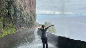Madera to góry. Warto o tym pamiętać. Nieważne, gdzie się zatrzymamy, nawet w stolicy spacer do byle Biedry (jest to przecież portugalska marka!) wymaga pokonania przynajmniej kilku pięter przewyższeń. Poza lewadami (kanałami doprowadzającymi wodę z północy wyspy na południe) większość szlaków to przewyższenia. Góry to także zmienność pogody. O ile na wybrzeżu jest ciepło, o tyle wewnątrz wyspy warunki bywają różne. Deszcz, gigantyczna mgła czy silny wiatr – wyspa potrafi pokazać swój charakter. Najniższą temperaturą, jaką mieliśmy w czasie majowego pobytu, było około 8°C w lesie wawrzynowym. Bezpośrednio przed wyjściem na szlak warto sprawdzić panujące na nim warunki i zaopatrzyć się w albo cieplejsze ubrania wraz z kurtką przeciwsłoneczną albo krem z mocnym filtrem.